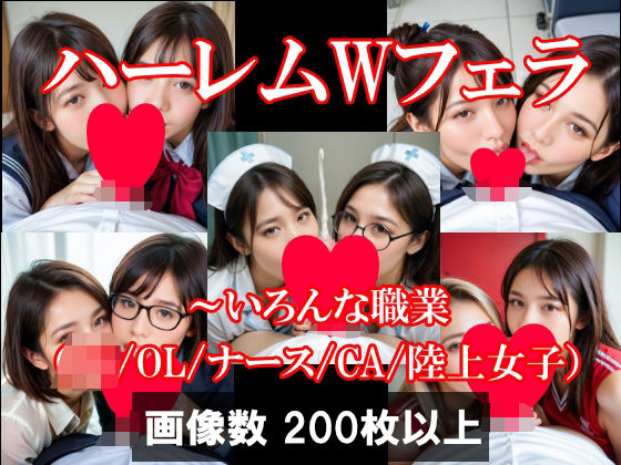 ハーレムWフェラ〜いろんな職業(JK/OL/ナース/CA/陸上女子)