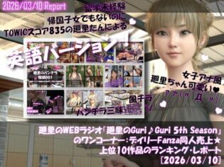 同人 【d_743929】【▲20】英語★廻里の自撮りWEBラジオ『廻里のGuriGuri(グリグリ)5thシーズン』のワンコーナー:デイリーFanza同人売上★上位10作品のランキング・レポート[2026/03/10]【Libido-Labo】